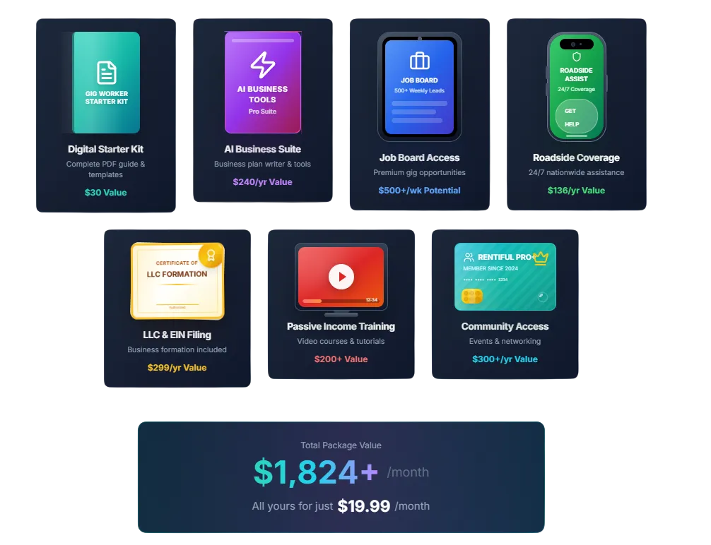 Rentiful.io PRO is the only all-in-one membership that gives gig workers real support, real savings, and a real path to becoming independent business owners.