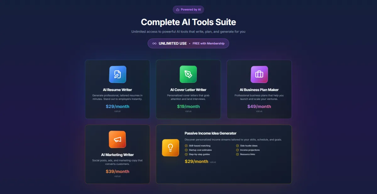 Use our cutting edge AI tools to begin creating, implementing or putting the finishing touches on your next business idea to print money while you sleep.